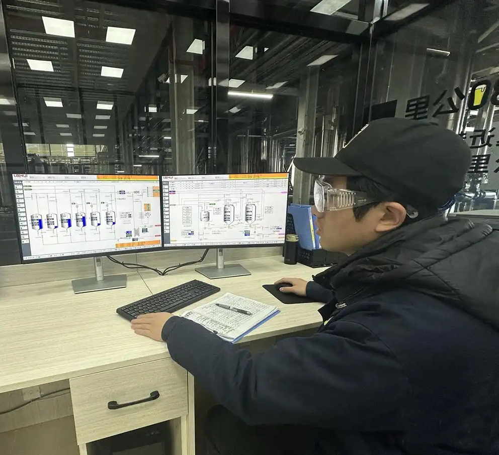 工作人员坐在电脑前“一键操作”就能控制整个生产工序 记者张衡 摄