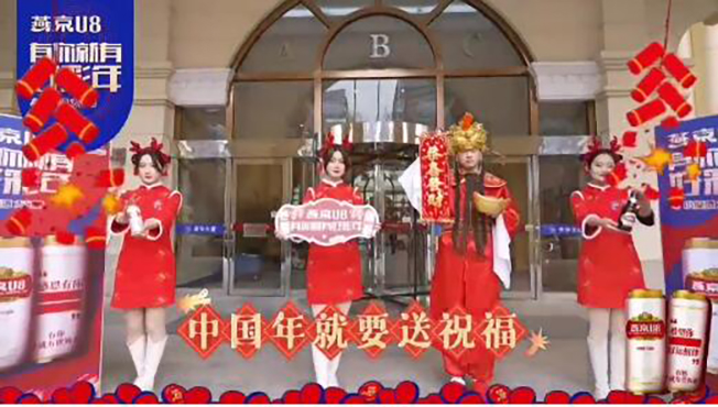 2023年春节燕京啤酒推出U8新春版、加量红包封面、互动好礼、有你歌曲大赛、大屏联动、定制祝福、好彩直播、春晚霸屏8波好彩活动,全方位联动线上线下互动,串联起兔年新春的洋洋喜气。
