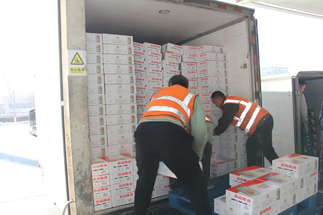 1月30日,在燕京啤酒内蒙古金川有限公司物流仓库里,一批又一批刚刚下线、包装精美的啤酒整整齐齐地码放在仓库的两边。库房外一辆辆大货车停在门口,叉车来回运输,将一箱箱不同品种的新鲜啤酒装运上车,并被迅速发往乌海、北京等地区。公司物流部经理秦亚军说,“我们每天根据公司市场订单,差不过安排将近20多辆车运输货物,发货量达到320吨左右。”