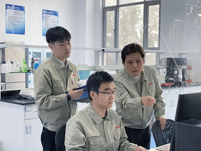 燕京啤酒科研团队查看啤酒酿造中的各项数据