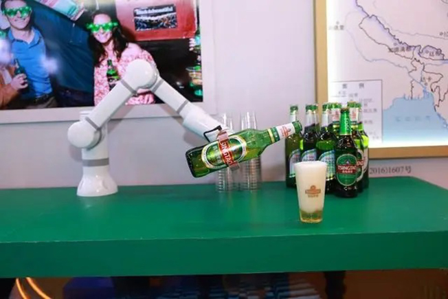 “有了发酵罐前喝啤酒的感觉”“浓浓麦香,口感很正,熟悉的青啤却能带给我们超预期的好喝”“特别个性化,我们每款都十分喜欢”……在青岛啤酒展区人头攒动,大家兴致勃勃,对色泽不一、风格各异的产品进行试饮、品鉴,另一边,机械臂自如伸展、精细操作,为消费者奉上一杯杯青啤,吸引不少消费者拍照,人气颇旺。
