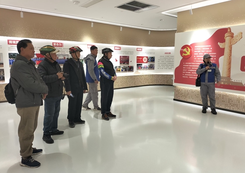 在公司污水处理站,骑行爱好者饶有兴趣地参观污水处理过程并不时提出问题。周楠介绍,公司污水采用协议排放方式,即公司产生的废水经污水处理站初步处理后,按照公司与城市污水处理厂签订的协议排放标准,纳管进入城市污水处理厂再深度处理,最终达标外排。