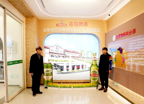 周楠是公司工程部的环保主管,他热情地引领骑行爱好者沿办公楼门前景观水系拾级而上,穿越酒泡时空隧道,感受青啤“1903”百年历程,观览啤酒现代生产灌装工艺,品尝百年青啤浓郁味道,体验啤酒小屋的妙趣。从这里,参观者可以了解青岛啤酒创建、发展、改革创新的历史,体验一杯青岛啤酒从制麦、糖化、发酵到包装的奇妙旅程,更加直观地感受青岛啤酒的辉煌道路与精湛工艺,体味“一瓶啤酒连接世界”的奥妙。