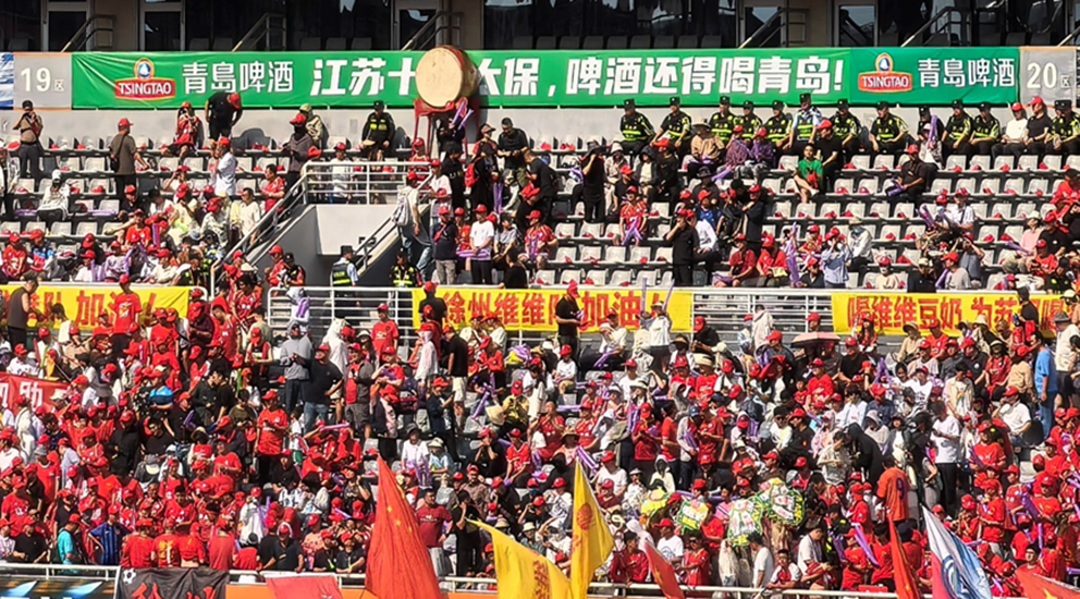 “江苏十三太保,啤酒还得喝青岛”,“苏超”赛场火爆进行时,青岛啤酒与“苏超”球迷嗨在一起,尽享每一个快乐瞬间!