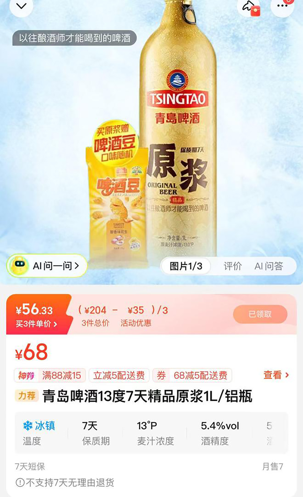 具体到产品来看,报告期内,该公司继续推进实施“青岛啤酒主品牌+崂山啤酒全国性第二品牌”的品牌战略,经典系、青岛白啤、高端生鲜1L铝瓶及超高端产品销量增长。
