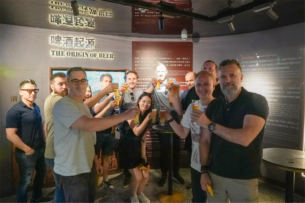 为提升国际游客体验,青岛啤酒博物馆还推出一系列便利措施,不仅上线多语种导览、升级支持VISA、万事达等国际信用卡及多币种结算支付系统,还针对各国游客推出定制化服务:馆内推出多国语言的讲解友好服务、菜单指示牌、AI啤酒品鉴讲解及侍酒师互动;同步推出与世界干杯定制文创、情意绵绵啤酒豆礼盒等联名周边,广受喜爱,收获携程国际游客好评。