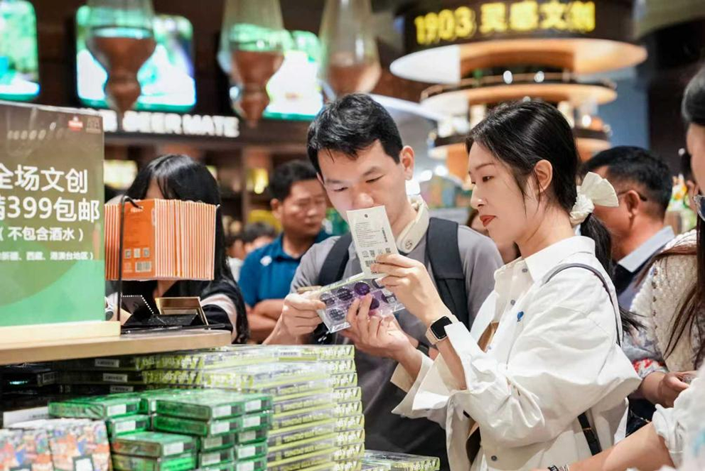 目前,青岛啤酒博物馆文创商城内的商品均支持退税,涵盖各种各样青岛啤酒以及极具青岛特色的文创产品等。其中,口感醇厚的原浆啤酒、青岛特色的啤酒豆等尤其受到境外游客的青睐。