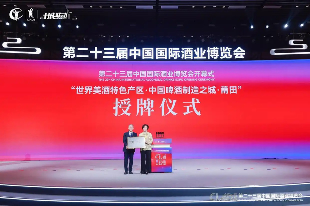 在本届中国国际酒业博览会开幕式上,福建莆田被中国酒业协会正式授予“世界美酒特色产区·中国啤酒制造之城”荣誉,成为中国备受瞩目的、以啤酒产业为核心定位的特色产区。这也标志着莆田依托以百威雪津为主的龙头企业构建了完整产业链、智能化制造体系及特色啤酒文化,跃升为啤酒产业标杆。