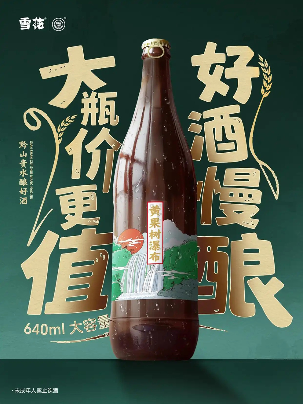 黄果树瀑布啤酒此次最大的亮点,是将贵州最具代表性的八处胜景——黄果树瀑布的壮阔、梵净山的灵秀、马岭河峡谷的秀丽、荔波小七孔的清澈、娄山关的雄浑、㵲阳河的清幽、草海的浩渺、甲秀楼的典雅等,以艺术化的设计搬上了瓶身。这不仅是一瓶啤酒,更是一件浓缩的风景画,一套可收藏的“微型明信片”。对游客而言,这瓶酒是旅途的见证,是分享见闻的最佳话题;对本地人而言,这是款待宾朋、传递家乡自豪感的独特礼物。