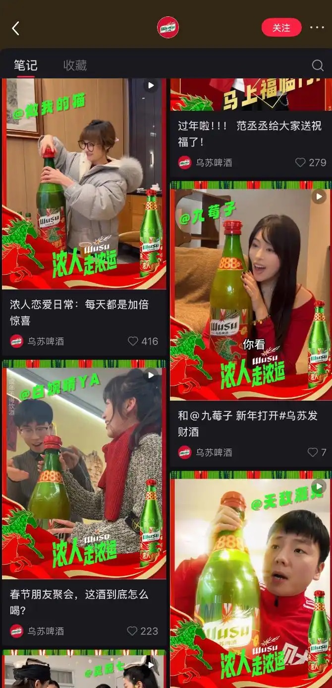 乌苏啤酒小红书账号截图