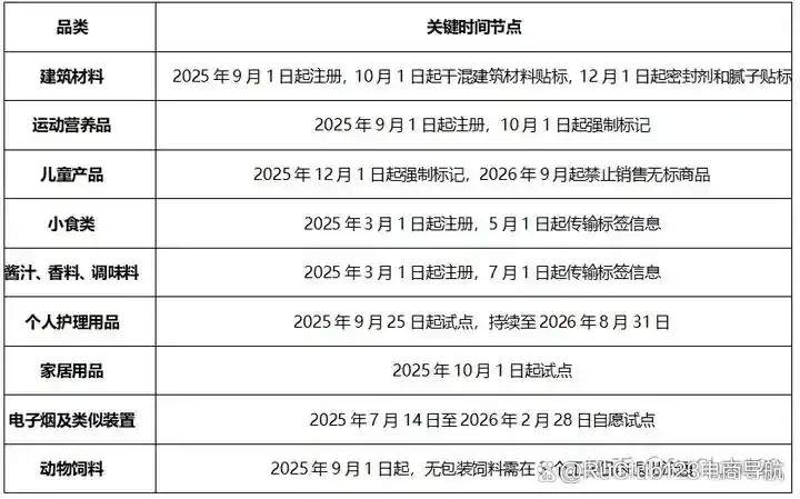 四、2025年启动试点或强制标记、2026年持续推进的品类