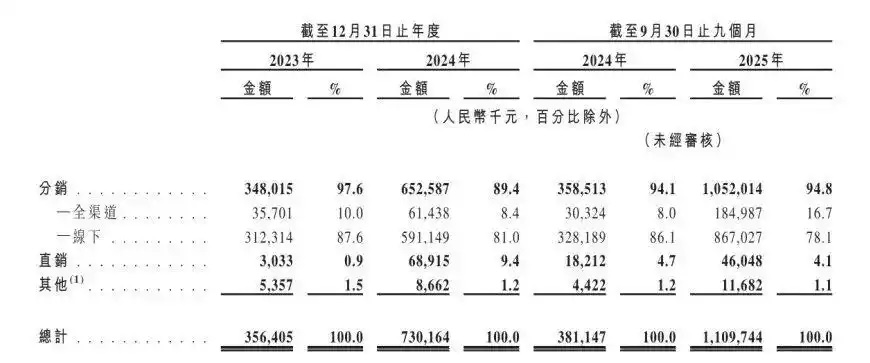 从销售渠道看,金星啤酒目前的营收主要来自分销,直销占比始终不足10%。招股书显示,2023年、2024年及2025年1-9月,分销收入占比分别为97.6%、89.4%、94.8%。