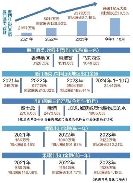 突破1亿元大关!今年1—10月厦门酒类及饮料出口额超去年全年总和