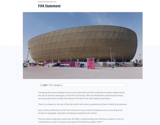 除了推动业绩增长,无醇啤酒也在品牌形象塑造方面扮演着重要角色。百威英博的“Bud Zero”便是典型代表。在2022年卡塔尔世界杯期间,由于场馆内禁售含酒精饮料,Bud Zero成为现场球迷的唯一选择。借助这一特殊场景,百威成功将无醇啤酒打造成体育文化和健康生活方式的结合体,让品牌影响力得以进一步扩大。