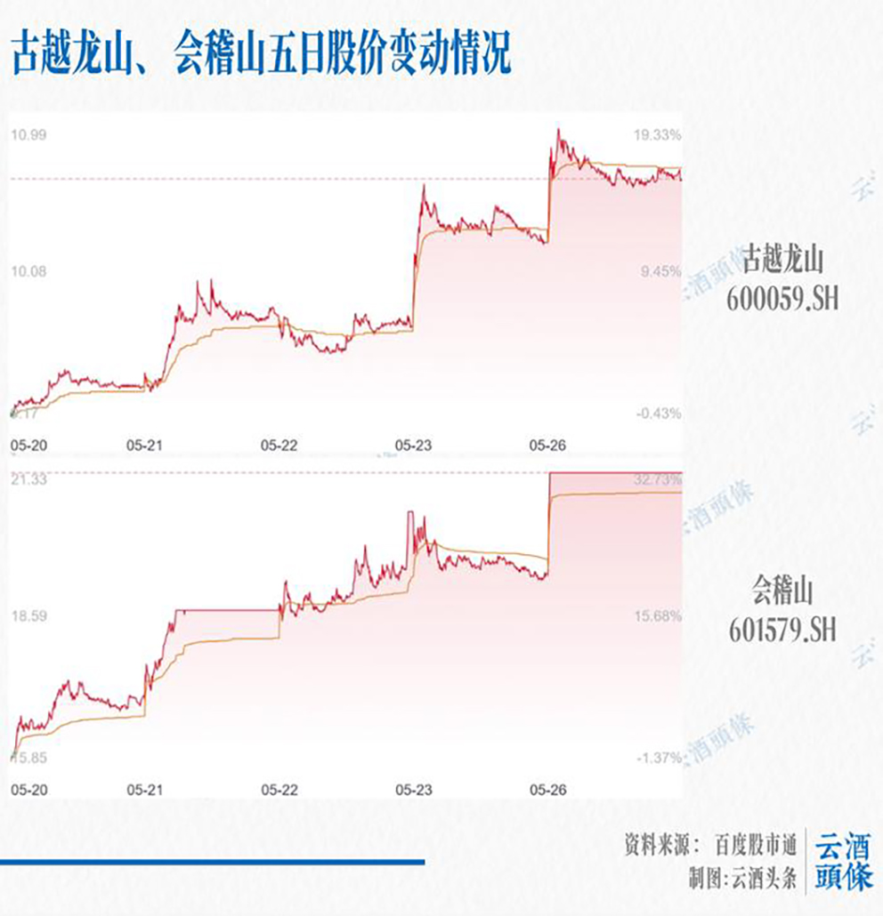 数据显示,5月6日-23日,两家公司股价分别上涨24.18%和15.78%,在酒类板块中备受关注。其中会稽山更是在5月26日涨停。