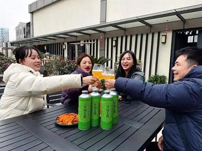 他对比试喝了市面上的信阳毛尖、六安瓜片等茶啤,“恩施玉露是我国保留下来为数不多的一种蒸青绿茶,更能保留茶叶原有的鲜爽和香气。”他说,一罐1升的酒体中使用原叶茶2.5克,约等于1杯茶的含茶量,茶韵更明显。 每罐1升装,定价20元以内。刘金鑫介绍,春节前仅在抖音平台销售;年后将启动线下渠道的重点推广,让更多消费者有机会喝到湖北茶啤。