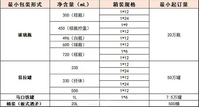 泰山啤酒承接代工业务,规定了最小起订量,玻璃瓶为20万瓶,100多吨,易拉罐起订量为50万罐。