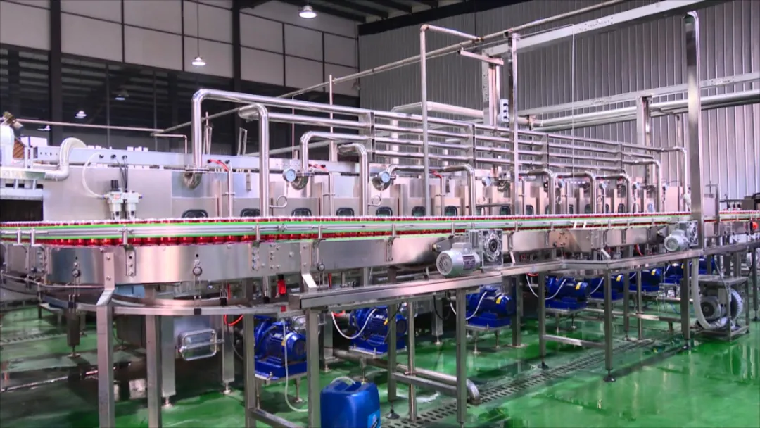 在公司生产车间,伴随着机器的轰鸣声,全自动化生产线满负荷运转,一罐罐啤酒在传送带上快速移动,经过灌装、检验、包装等环节,等待销往全国各地。