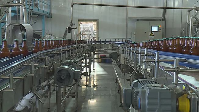 在黑龙江顶嘉啤酒有限责任公司酿造车间,机器的轰鸣声不绝于耳,浓郁的麦芽香扑鼻而来,一瓶瓶啤酒在传送带上经过灌装、消毒、封盖、贴签等环节后走下生产线,打包装箱销往全国各地。