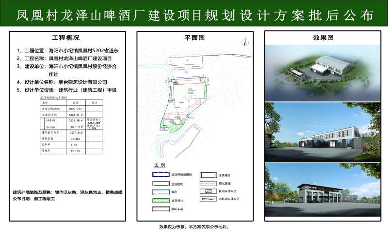 海阳市自然资源和规划局关于凤凰村龙泽山啤酒厂建设项目规划设计方案批后公布