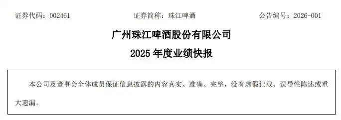 珠江啤酒发布2025年业绩快报 四季度意外亏损拖累全年
