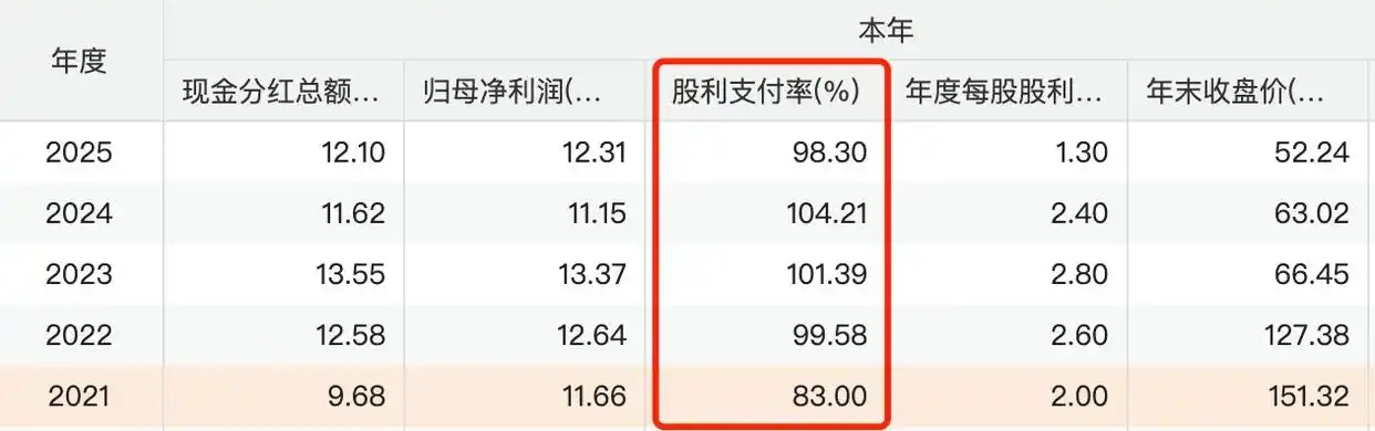 3月10日盘后,重庆啤酒公布2025年报,同时宣布了2025年度利润分配方案,拟向全体股东每股派发现金红利1.20元(含税),合计分配5.2亿元,加上2025年中期分红6.3亿元,全年派发红利12.1亿元,相比全年净利润12.3亿元,股利支付率达到98.3%。