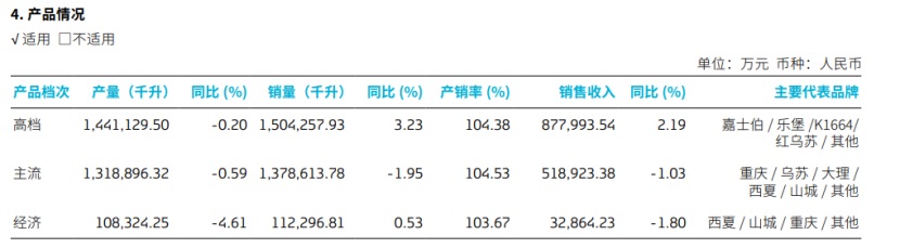 分产品档次来看,以重庆、乌苏、大理等为代表的主流产品,2025年实现营收51.89亿元,同比下滑1.03%,销量同比下降1.95%;以山城、西夏、重庆等为代表的经济产品,营收同比下滑1.80%至3.29亿元,本土品牌在主流与大众价格带均出现增长疲软甚至下滑的走势。