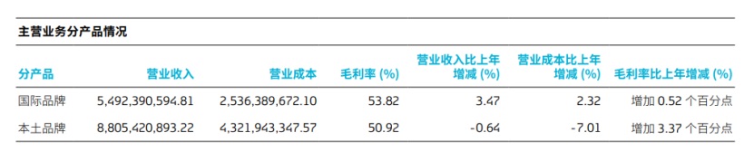 与此同时,本土品牌的增长叙事已陷入停滞,成为公司长期发展的核心隐忧。财报数据显示,2025年公司本土品牌实现营收88.05亿元,同比下滑0.64%,销量同比下降1.22%,与国际品牌的量利齐升形成鲜明反差。