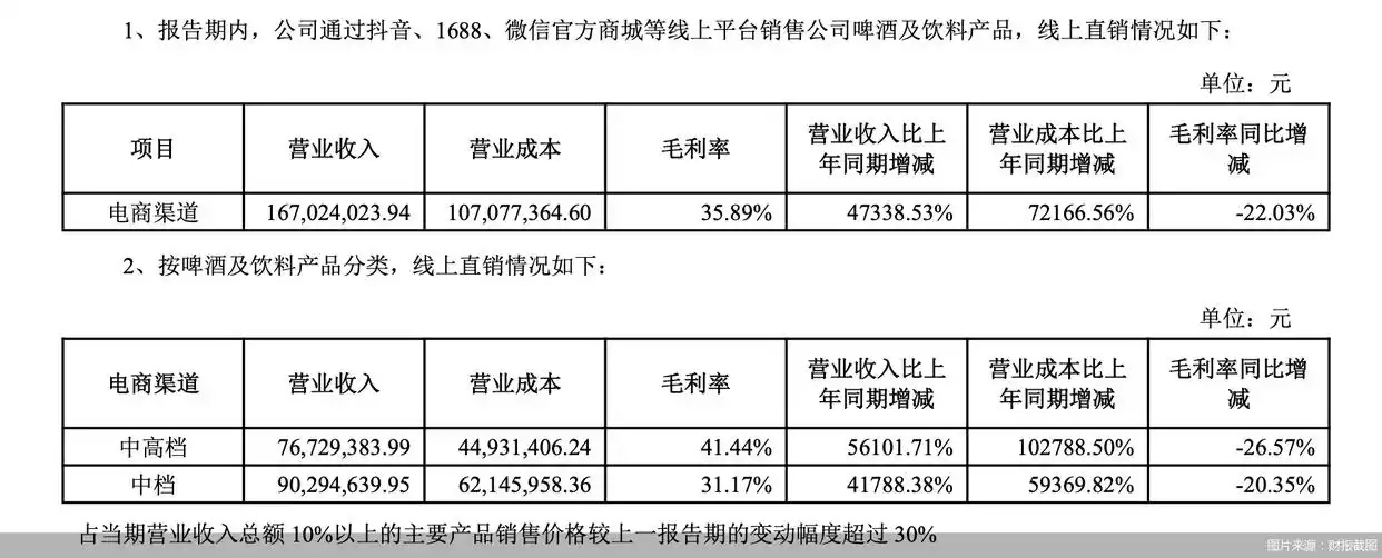 抖音直播间的疯狂“甩货”让*ST兰黄电商渠道在2025年上演了一场堪称“狂飙”的业绩增长。财报数据显示,2025年*ST兰黄旗下啤酒及饮料产品电商渠道营收从2024年的35.2万元飙升至1.67亿元,增长超过473倍。针对线上电商渠道业绩猛增的原因,北京商报记者致电*ST兰黄董秘办,截至发稿前电话未接通。但*ST兰黄曾在公告中指出,公司加大线上渠道投入,聚焦“抖音”“京东”等平台,通过多店矩阵协同运营,有效推动了线上销售快速增长,抖音平台直销成为报告期内啤酒业务的重要增长动力。